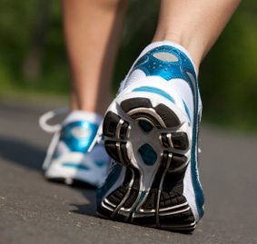 According to the American Podiatric Medical Association, exercise offers a host of benefits. Walking helps control weight, blood sugar, and cholesterol levels. A brisk walk can burn up to 100 calories per mile or 300 calories per hour. Walking also improves cardiovascular fitness. As an aerobic exercise, walking gets the heart beating faster to transport oxygen-rich blood from the lungs to the muscles. The heart and lungs grow more efficient with a regular walking regimen, reducing blood pressure and the resting heart rate. Walking is also a central element of medical rehabilitation for a wide array of health problems. For example, recovery from a heart attack can be facilitated by a regular walking regimen. Additionally, walking creates an overall feeling of well-being, and can relieve depression, anxiety, and stress by producing endorphins